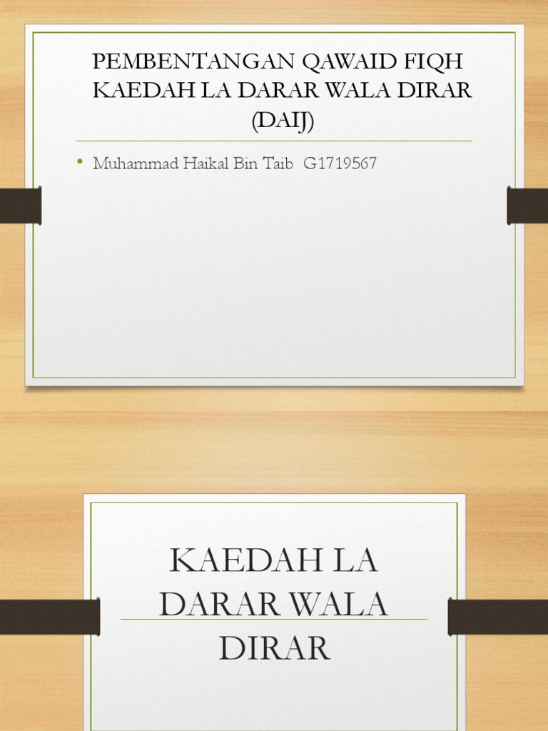 Pppg 3243 Kaedah Kaedah Fiqh Sem 2 10 11 La Dharar Wa La Dhirar Nurbazla Ismail Academia Edu